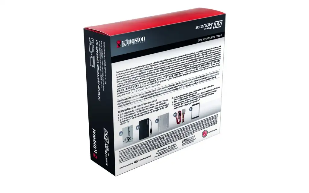 Kingston Technology SSDNow UV400 Desktop/Notebook Upg. Kit. Pooljuhtketta maht: 480 GB, SSD-ketta mõõtmed: 2.5", Lugemise kiirus: 550 MB/s, Kirjutamise kiirus: 500 MB/s, Andmeedastuskiirus: 6 Gbit/s