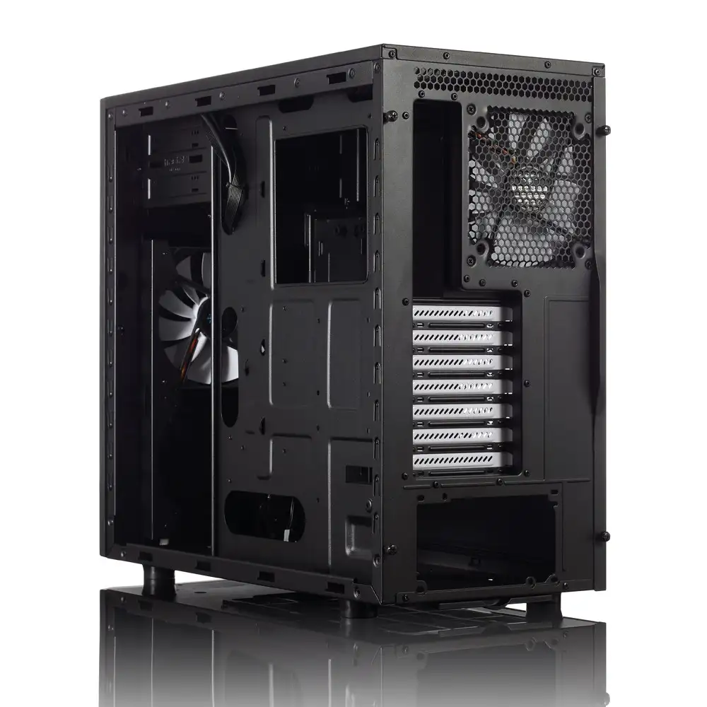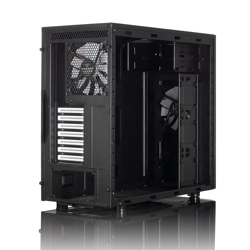 | Cooling System | Front: 2 - 120/140mm fans (included is 1 hydraulic bearing 140mm Silent Series R2 fan, 1000 RPM speed) Rear: 1 - 120/140mm fan (included is 1 hydraulic bearing 140mm Silent Series R2 fan, 1000 RPM speed) Top: 2 - 120/140mm fan (not included) Bottom: 1 - 120/140mm fan (not included, PSU length limits apply) Side: 1 - 120/140mm fan (not included) WATER COOLING COMPATIBILITY: Front –30mm thick 240 or 280mm radiator: 15mm fan spacing required for full fastening, radiators with 20mm fan spacing can be used with only the top half fastened to the case. (radiators of any thickness may be used if all 3.5" positions are empty) Top – 30mm thick 240mm radiator (with no components on the upper 11 mm on the motherboard that are taller than 38mm) Top – 30mm thick 280mm radiator with slim fans Rear – 120/140 mm radiator |