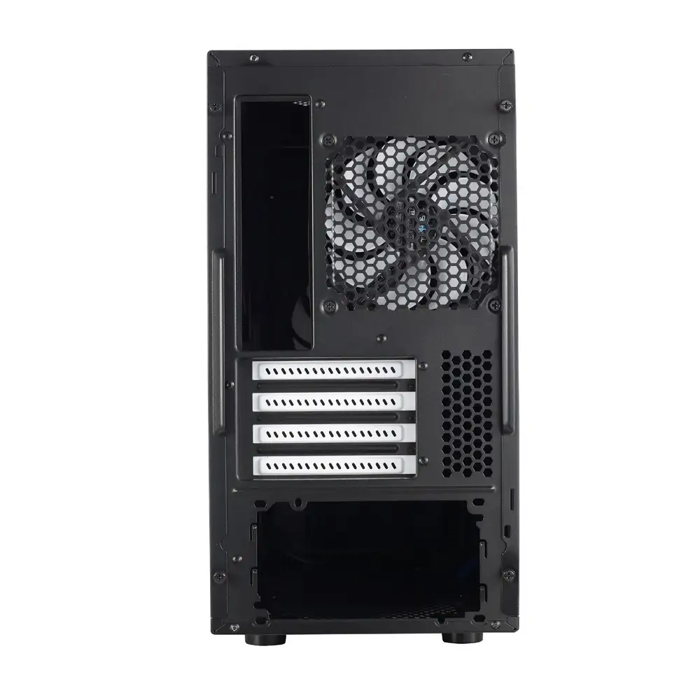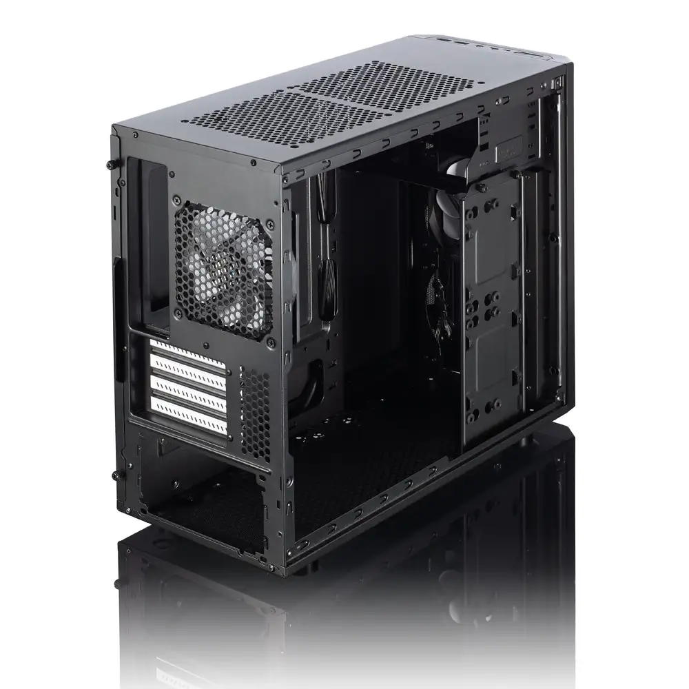 | Cooling System | - Front: 2 - 120mm fans (included is 1 Fractal Design Silent Series LT 120mm 1200 RPM speed) or 1 - 140mm fan (not included, two positions available) - Rear: 1 - 120mm fan (included is 1 Fractal Design silent 120mm fan, 1200 RPM speed) - Top: 2 - 120/140mm fan (not included) - Bottom: 1 - 120mm fan (not included, two positions available) or 1 - 140mm fan (not included) - Side: 1 -140mm fan (not included) (Water Cooling compatibility: - Front : Slim 240mm radiator (with lower ODD slot unused) - Top : Slim 240mm radiator (with upper ODD slot occupied by a device no longer than 150mm and with no components on the upper 23 mm on the motherboard that are taller than 34mm) - Rear : 120 mm radiator) |