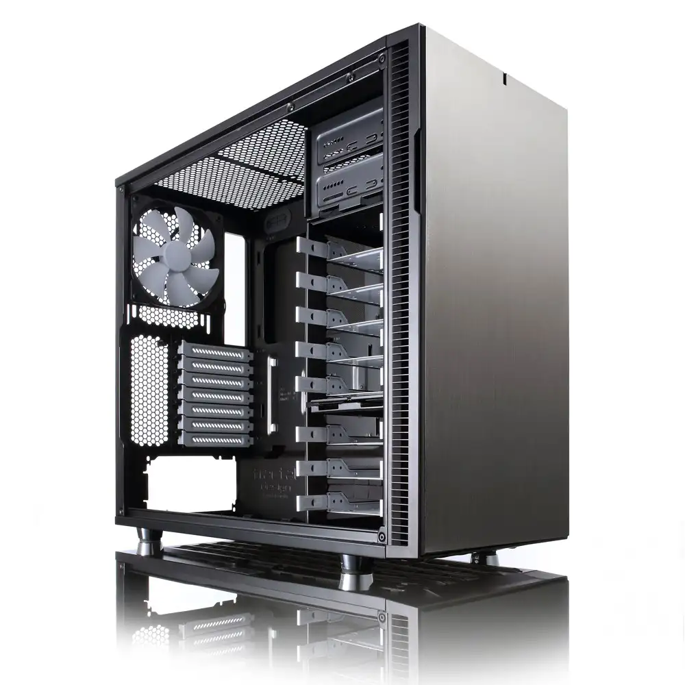 Fractal Design Define R5. Toote kuju: Midi Tower, Tüüp: PC, Toote värv: Titaanium. Toiteploki asukoht: Põhi. Installitud esiventilaatorid: 1x 140 mm, Toetatud esiventilaatorite läbimõõt: 120,140 mm, Toetatud küljeventilaatorite läbimõõt: 120,140 mm. Toetatud kõvakettasuurused: 2.5,3.5". Laius: 232 mm, Sügavus: 521 mm, Kõrgus: 451 mm