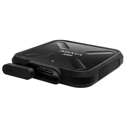 ADATA SD700. Pooljuhtketta maht: 256 GB, Lugemise kiirus: 440 MB/s, Kirjutamise kiirus: 430 MB/s. USB-konnektor: Micro-USB B, USB versioon: 3.0 (3.1 Gen 1). Toote värv: Must, Kaitseomadused: Tolmukindel, Löögikindel, Veekindel. Talitluspinge: 5 V, Võimsustarve: 900 mA. Laius: 83,5 mm, Sügavus: 83,5 mm, Kõrgus: 13,9 mm
