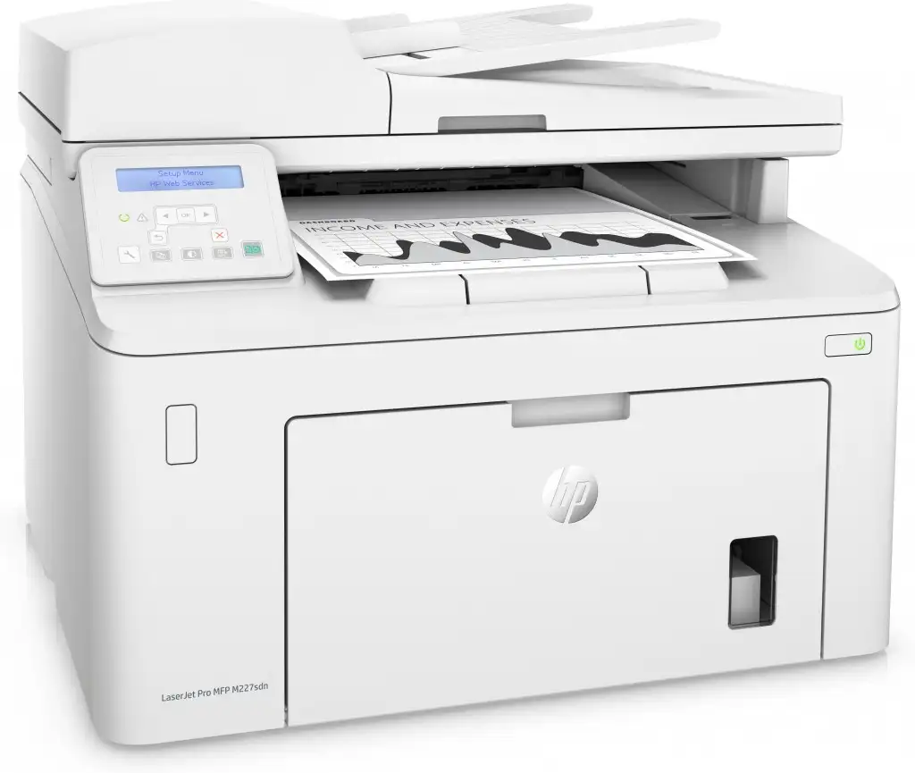 HP LaserJet Pro M227sdn. Printimistehnoloogia: Laser, Printimine: Mono printimine. Maksimaalne resolutsioon: 1200 x 1200 DPI. Kopeerimine: Mono kopeerimine. Maksimaalne kopeerimisresolutsioon: 600 x 600 DPI. Skaneerimine: Värviskaneerimine, Dupleksfunktsioonid: Print. Maksimaalne ISO A-seeria paberi suurus: A4. Standardne sisestusvõimsus: 250 lehte, Standardne väljundvõimsus: 150 lehte. Toote värv: Valge