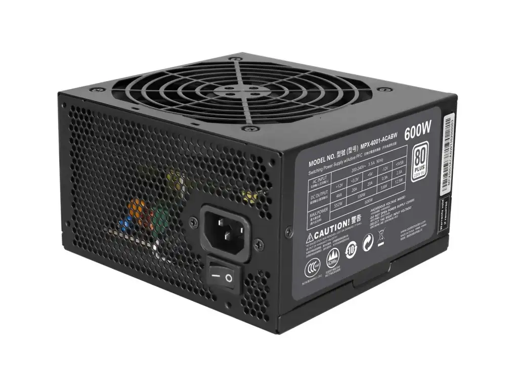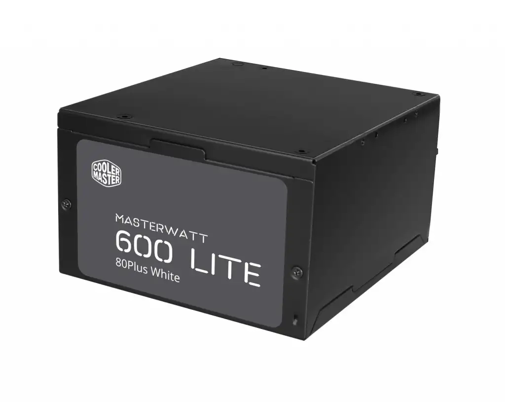 Cooler Master MasterWatt Lite. Koguvõimsus: 600 W, AC-sisendpinge: 200 - 240 V, AC-sisendsagedus: 47 - 63 Hz. Emaplaadi toitepistmik: 20+4 pin ATX. Otstarve: PC, Toiteploki (PSU) standard: ATX, 80 PLUS sertifikaat: 80 PLUS. Toote värv: Must, Jahutuse tüüp: Aktiivne, Ventilaatori läbimõõt: 12 cm. Laius: 150 mm, Sügavus: 140 mm, Kõrgus: 86 mm