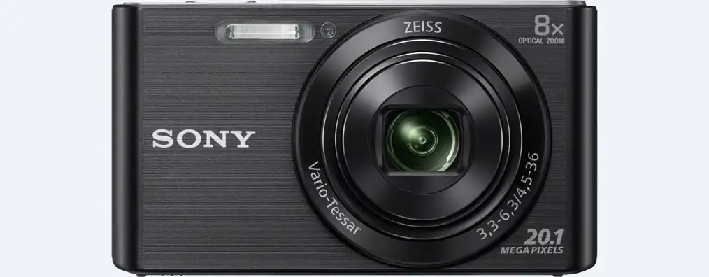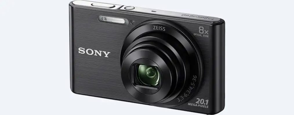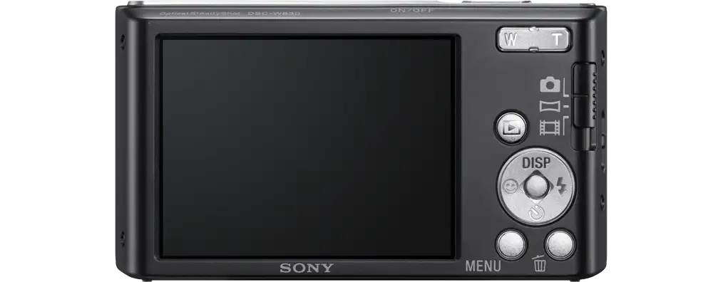 Sony DSC-W830. Kaamera tüüp: Kompaktkaamera, Megapiksel: 20,1 MP, Anduri tüüp: CCD, Maksimaalne pildiresolutsioon: 5152 x 3864 pikslit. ISO-tundlikkus (max): 3200. Optiline suum: 8x, Digitaalne suum: 64x, Fookuskauguse ulatus: 4.5 - 36 mm. Kaamera kiireim katikukiirus: 1/16000 s. Maksimaalne video resolutsioon: 1280 x 720 pikslit. Ekraani diagonaal: 6,86 cm (2.7"). Sisemälu: 27 MB. Kaal: 104 g. Toote värv: Must