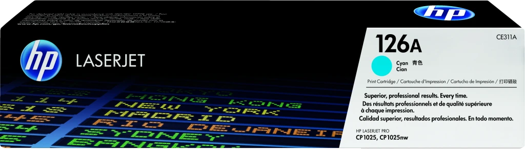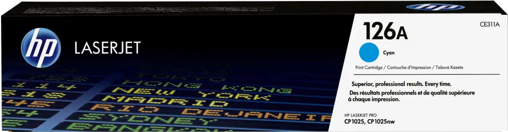 HP 126A Cyan Original LaserJet Toner Cartridge. Värvilise toonerkasseti prinditavate lehekülgede arv: 1000 lehekülge, Printimisvärvid: Tsüaan, Kogus pakis: 1 tk