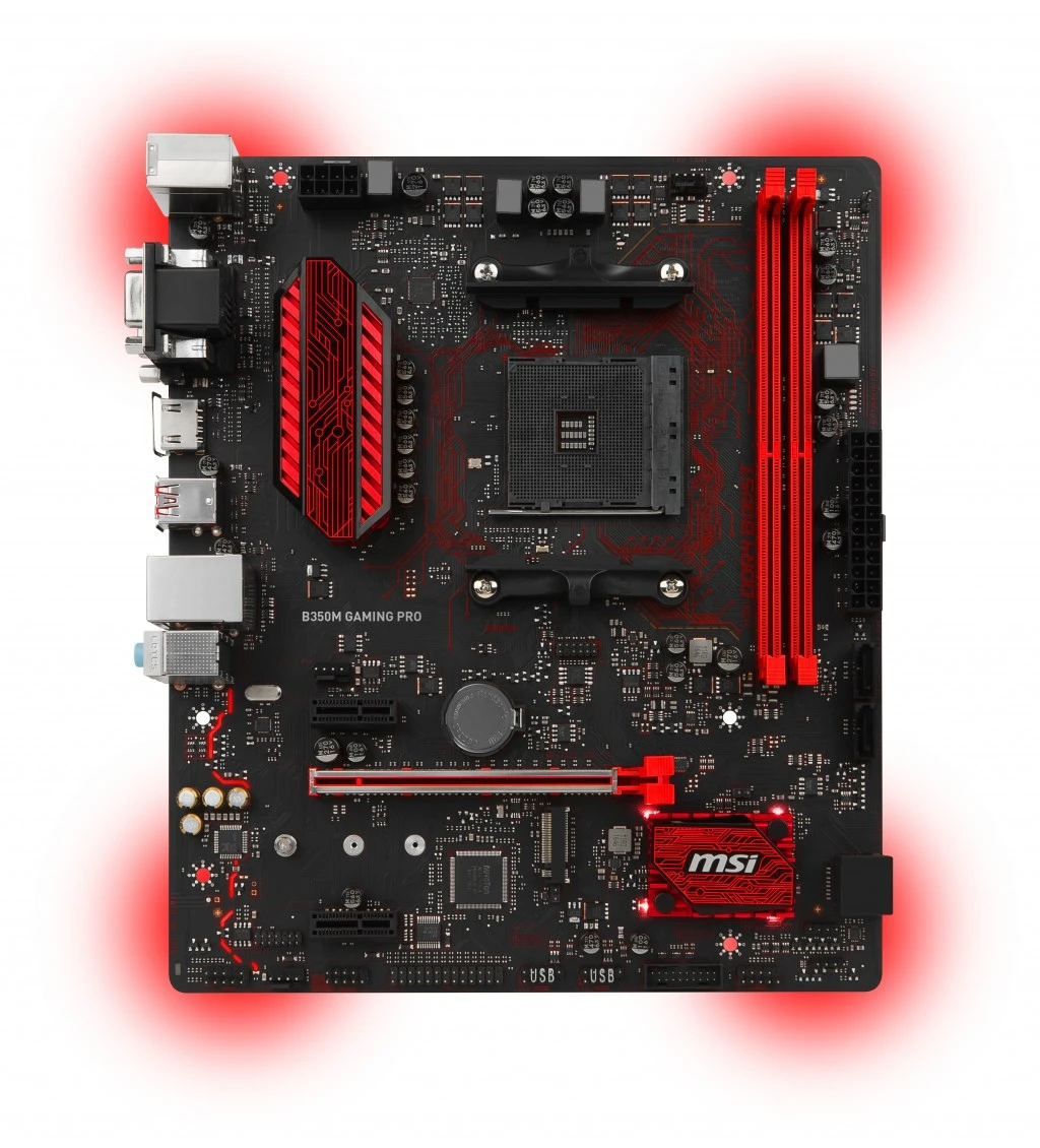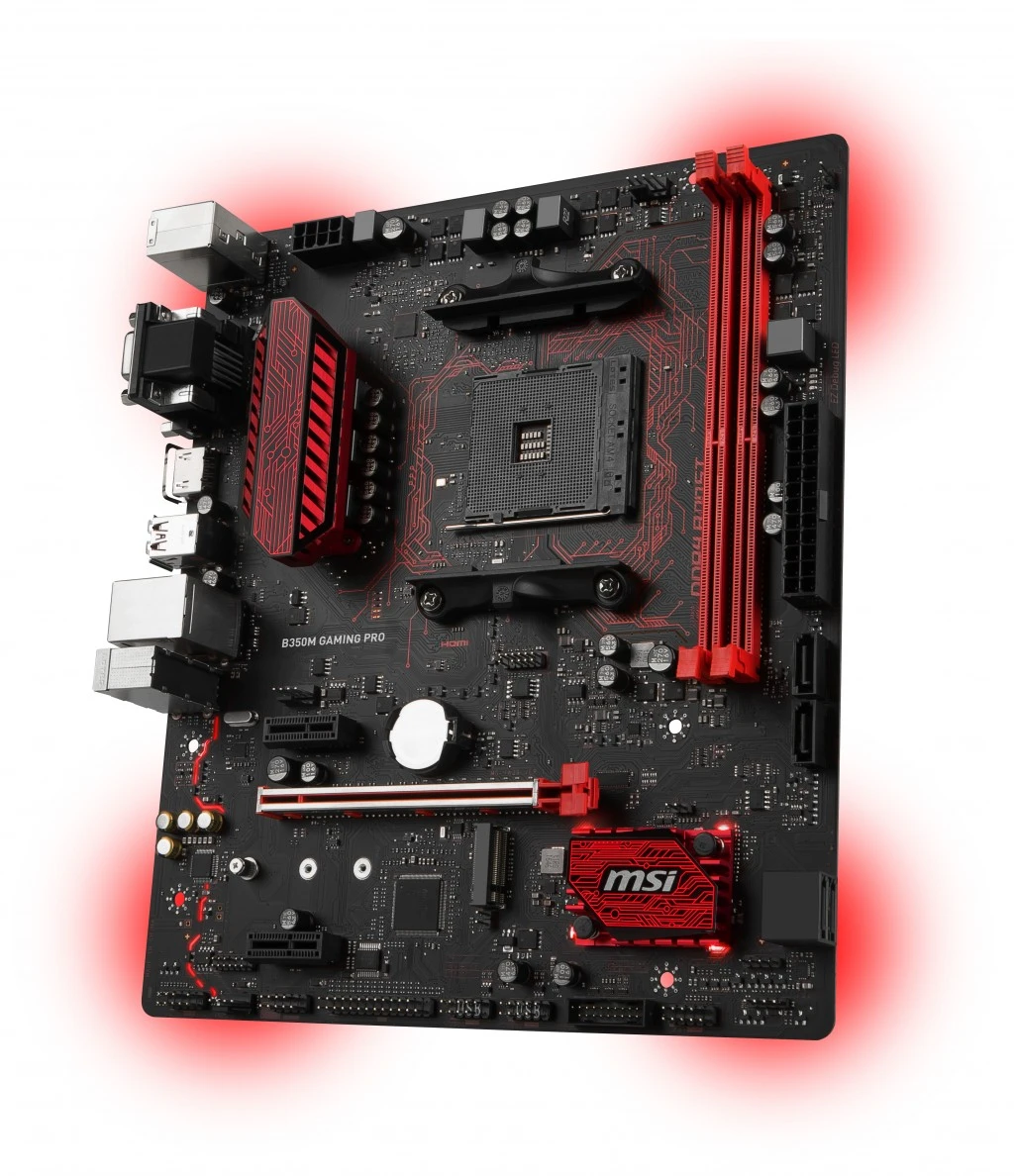 MSI B350M GAMING PRO. Toetatud mälutüübid: DDR4-SDRAM, Mälupesa tüüp: DIMM, Toetatud mälu taktsagedused: 1866,2133,2400,2667,2933,3200 MHz. Protsessori tootja: AMD, Ühilduvad protsessoriseeriad: AMD A,AMD Ryzen, Protsessori pesa: Pesa AM4. Toetatud ketaste tüübid: HDD, SSD, RAID-tasemed: 0, 1, 10. Ethernet-liidese tüüp: Kiire Ethernet, Gigabit Ethernet, LAN-kontroller: Realtek RTL8111H. Komponent: PC, Emaplaadi kiibistik: AMD, Emaplaadi kiip: AMD B350