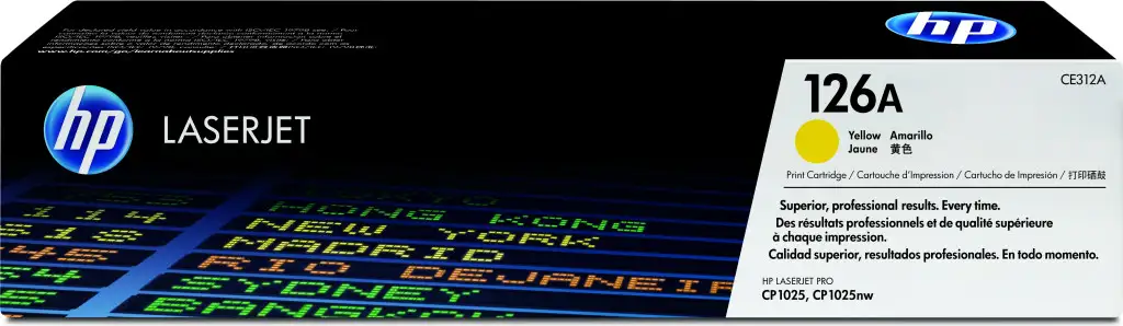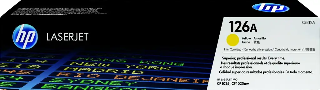 HP 126A Yellow Original LaserJet Toner Cartridge. Värvilise toonerkasseti prinditavate lehekülgede arv: 1000 lehekülge, Printimisvärvid: Kollane, Kogus pakis: 1 tk