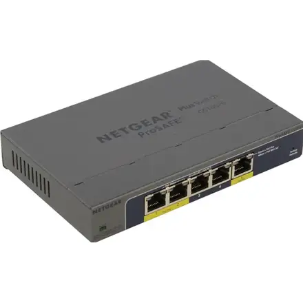 Netgear GS105PE. Lüliti tüüp: Mittejuhitav, Lüliti kiht: L2. RJ-45 Etherneti ühenduse pesade tüüp: Gigabit Ethernet (10/100/1000), RJ-45 Etherneti ühenduse pesade arv: 5. Täisdupleks. MAC-aadresside tabel: 8192 sisestust. Võrgustandardid: IEEE 802.3,IEEE 802.3ab,IEEE 802.3i,IEEE 802.3u. Power over Ethernet tugi