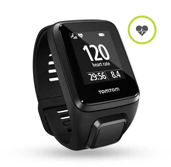 TomTom Spark 3 Cardio. Toote värv: Must, Veekindel kuni: 40 m. Ekraani resolutsioon: 144 x 168 pikslit. Kaal: 50 g, Paksus: 1,37 cm. Kaablid kaasa arvatud: USB