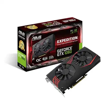 ASUS EX-GTX1060-O6G. Graafikaprotsessorite pere: NVIDIA, Graafikaprotsessor: GeForce GTX 1060, Protsessori sagedus: 1594 MHz. Eraldiseisva graafikakaardi mälu: 6 GB, Graafikaadapteri mälutüüp: GDDR5, Mälusiin: 192 bitti, Mälu taktsagedus: 8008 MHz. Maksimaalne resolutsioon: 7680 x 4320 pikslit. OpenGL-i versioon: 4.5. Liidese tüüp: PCI Express 3.0. Jahutuse tüüp: Aktiivne