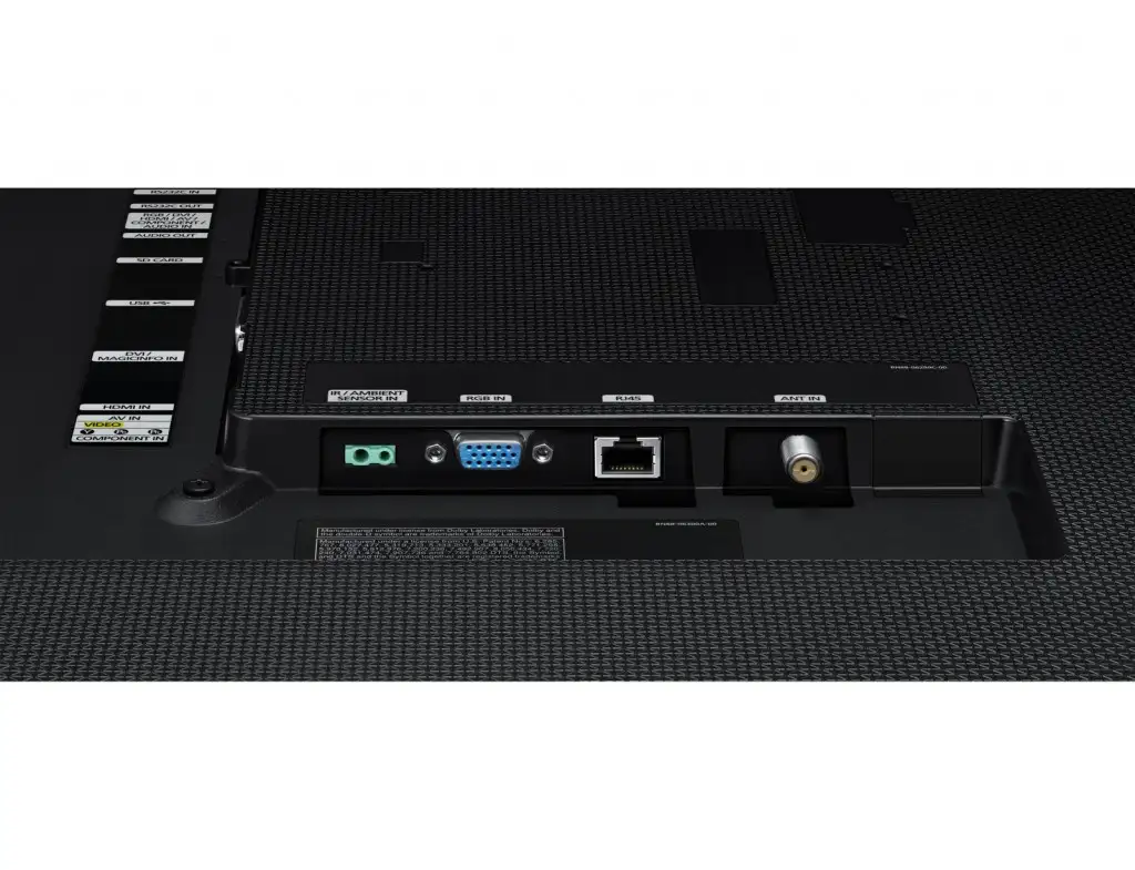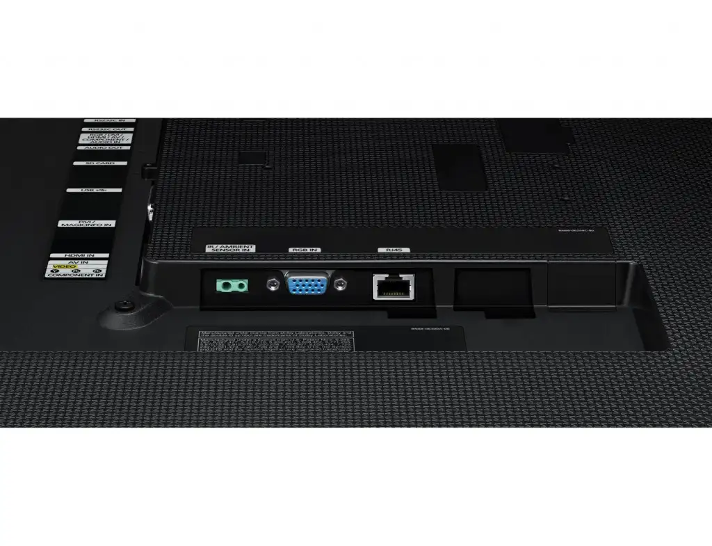 Samsung LH55DBEPLGC. Ekraani diagonaal: 139,7 cm (55"), Kuvamise tüüp: LED, Ekraani resolutsioon: 1920 x 1080 pikslit. RMS-nimivõimsus: 20 W. Disain: Digital signage lameekraan, Toote värv: Must, VESA-paigaldusliidesed: 400 x 400 mm. Töötunnid (tunnid/päevad): 16/7. Võimsustarve (tüüpiline): 123 W, Võimsustarve (ooterežiim): 0,5 W, Võimsustarve (unerežiim): 0,5 W