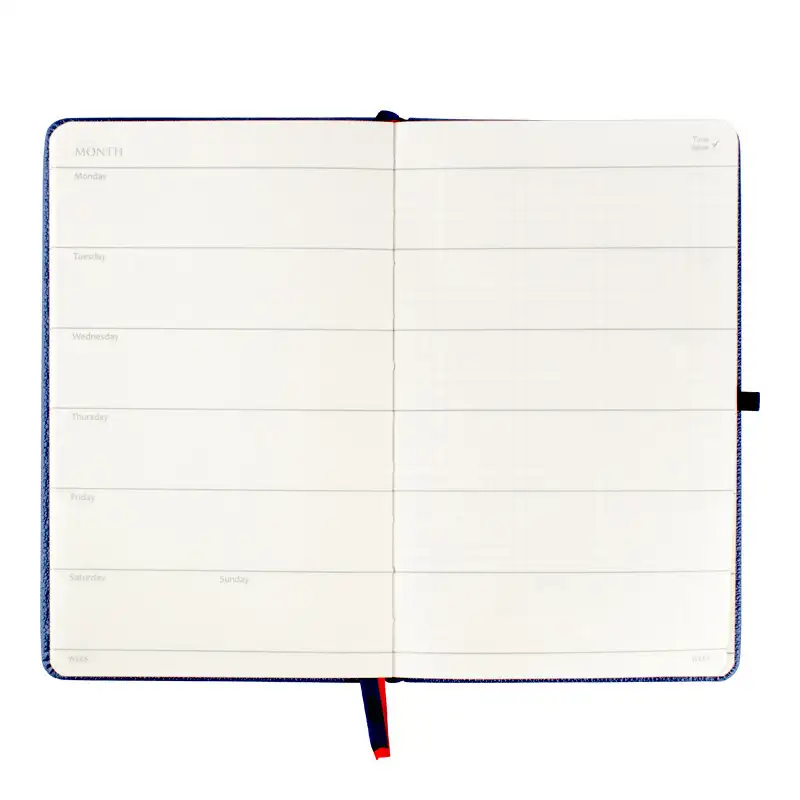 • Lehekülgede arv: 256 lehte ruutudega kuupäevade märgistamise võimalusega (kõikide tööpäevade kohta aastas), universaalne 12-kuuline laud