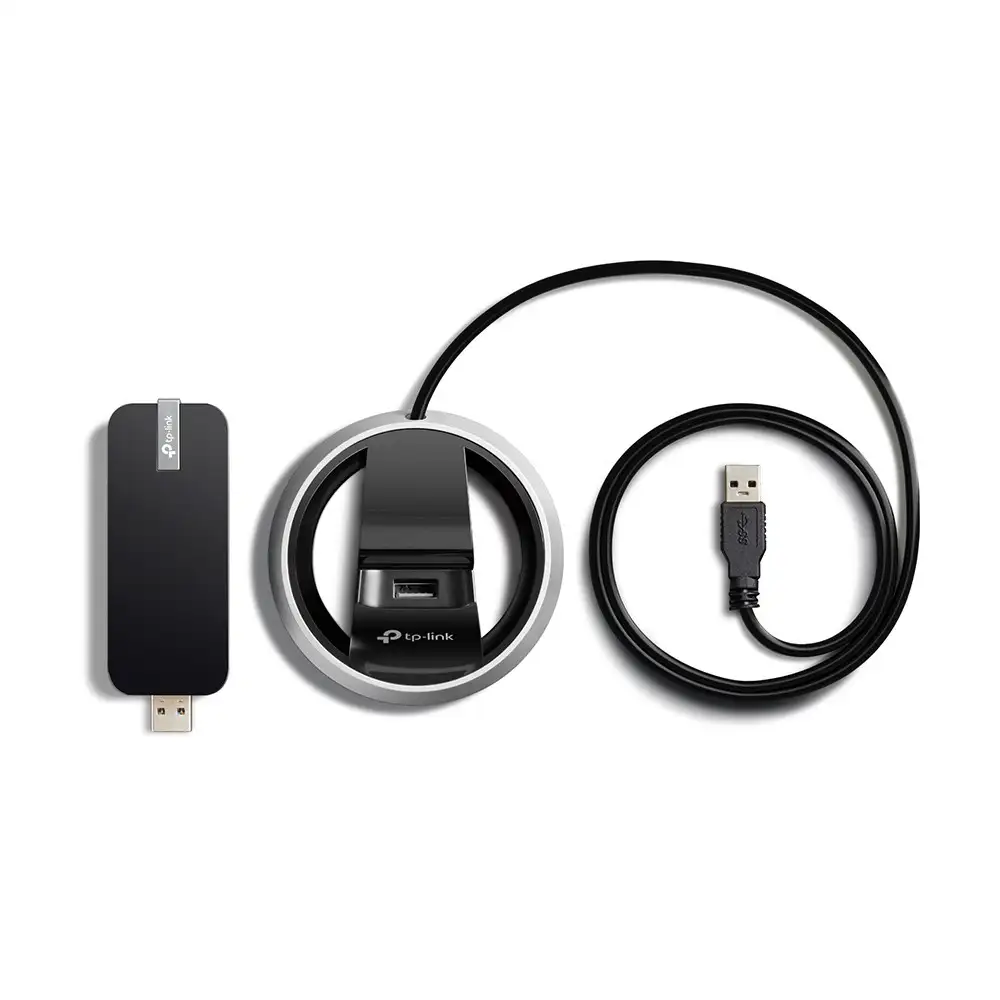 TP-Link Archer T9UH. Ühenduvustehnoloogia: Juhtmevaba, Hostiliides: USB, Liides: WLAN. Andmete edastamise maksimaalne määr: 1300 Mbit/s, Wi-Fi standard: Wi-Fi 5 (802.11ac), Wi-Fi laineala: Kaks sagedusala (2,4 GHz / 5 GHz). Toide USB kaudu. Toote värv: Must