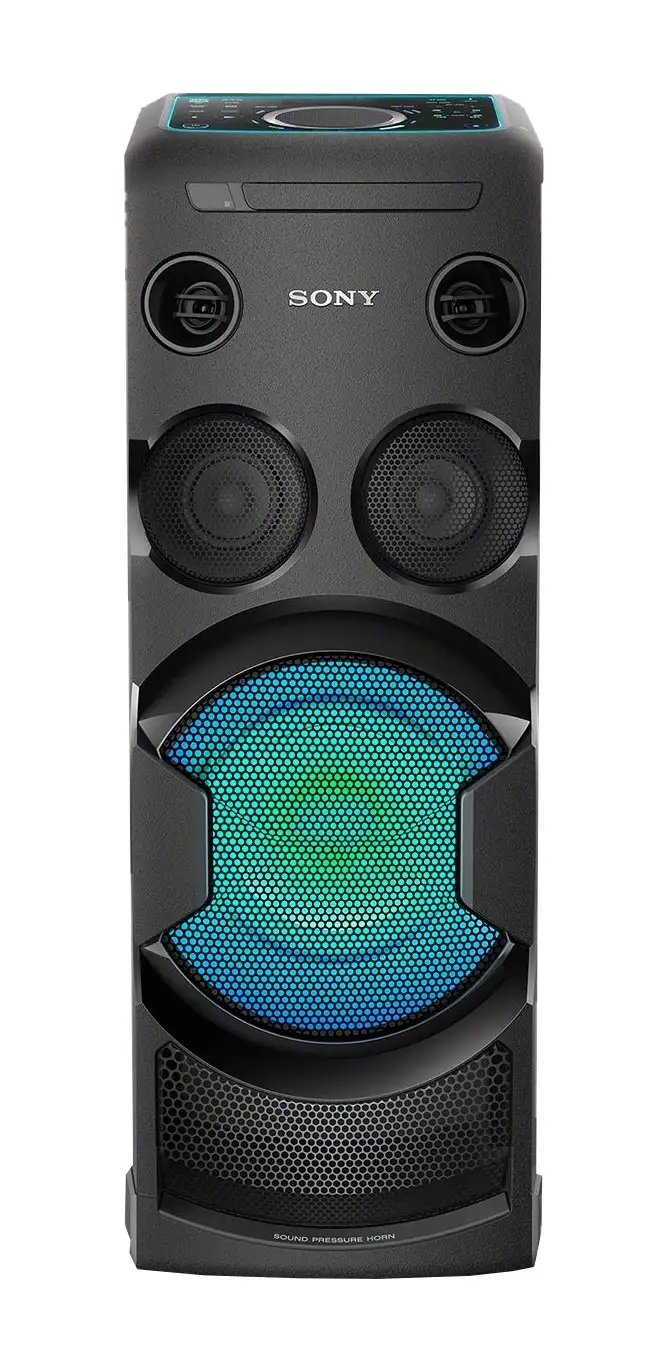 Sony MHC-V50. Tüüp: Torn, Toote värv: Must, Värvus: Monotoonne. RMS-nimivõimsus: 660 W, Kõlari tüüp: 3-suunaline, Mid-range draiveri diameeter: 8 cm. Toetatud raadiolainealad: FM, FM-laineala ulatus: 87,5 - 108 MHz. Bluetooth-profiilid: A2DP,AVRCP,SPP. Toetatud audioformaadid: AAC,MP3,WAV,WMA, Taasesitusketta formaat: CD audio, DVD-audio, VCD, Toetatud videoformaadid: MPEG1,MPEG4,XVID