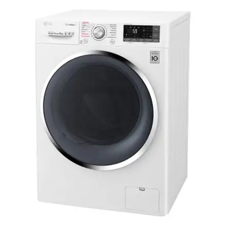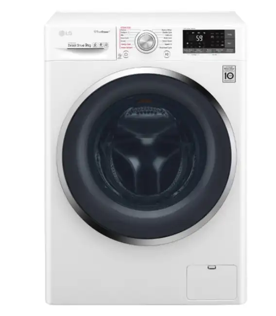 LG F4J8VS2W. Laadimistüüp: Eest täidetav. Trumli mahutavus: 9 kg, Tsentrifuugimise klass: A, Müratase (tsentrifuugimisel): 74 dB, Müratase (pesu): 53 dB, Maksimaalne pöörlemiskiirus: 1400 RPM. Energiatõhususe klass: A+++-30%, Aastane energiakulu pesemisel: 152 kWh, Aastane veekulu pesemisel: 9000 l. Toote värv: Valge. Laius: 560 mm, Sügavus: 600 mm, Kõrgus: 850 mm
