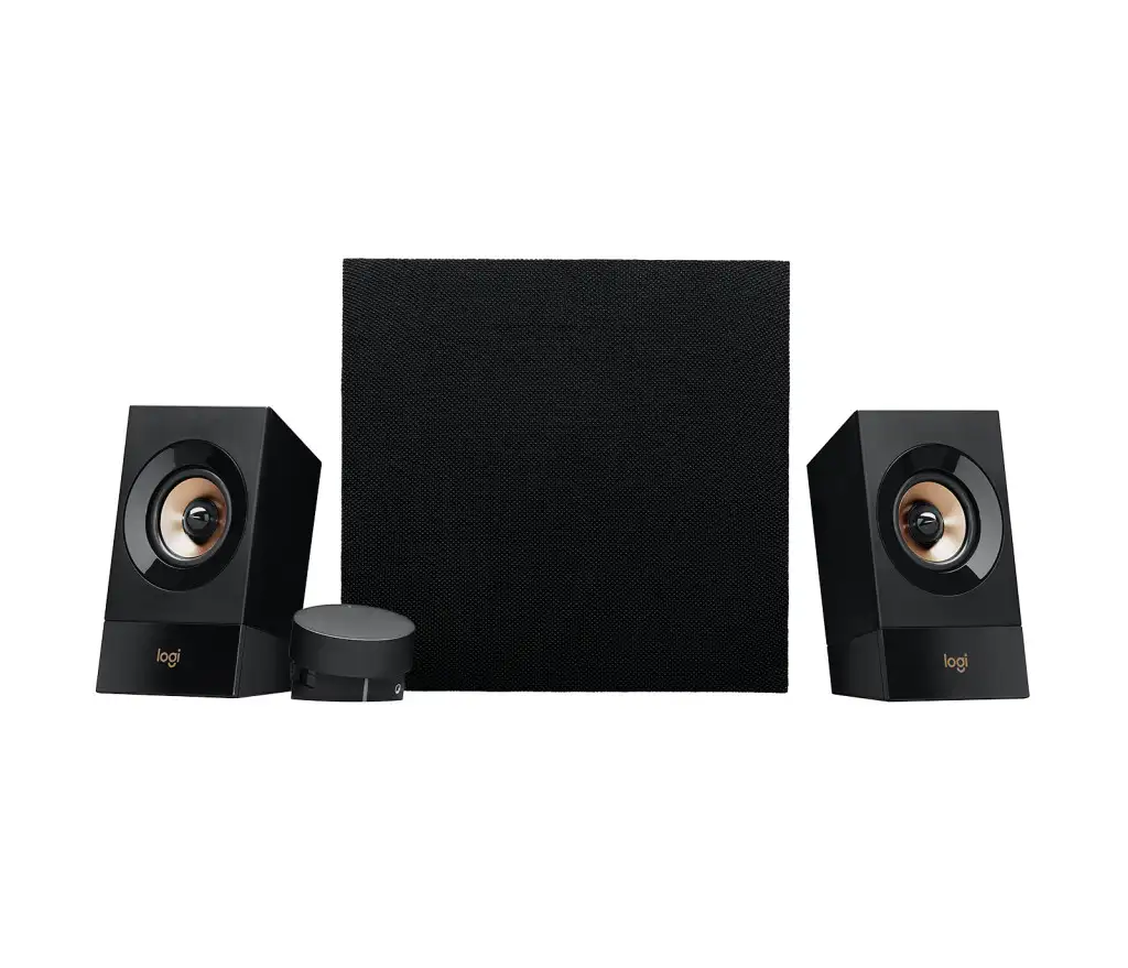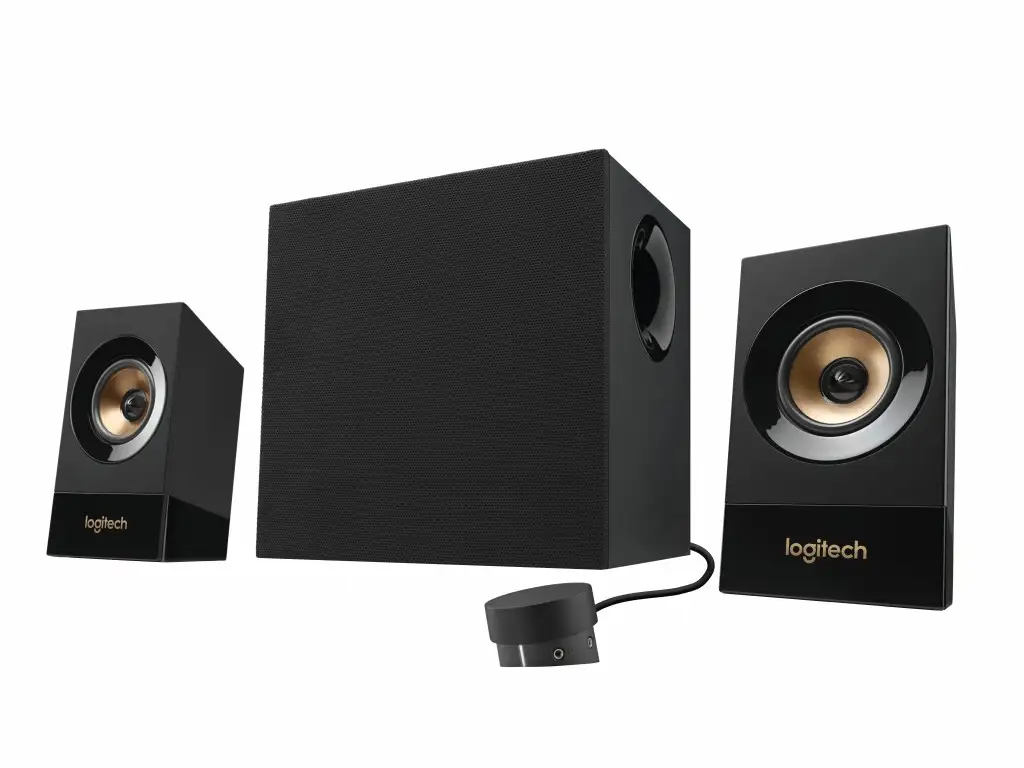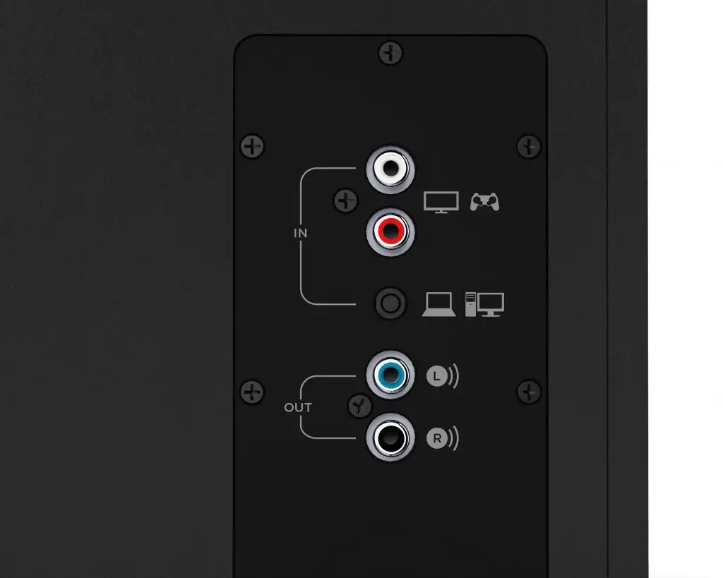 This 120 Watts Peak/60 Watts RMS powerful 2.1 speaker system delivers dynamic bass from its front-facing subwoofer. Connect up to three compatible devices via 3.5mm and RCA inputs. Access all controls from one integrated control pod. 120 Watts Peak/60 Watts RMS power delivers powerful yet balanced acoustics. Full range drivers are designed to move sound throughout the entire room. Enjoy a powerful, room-filling audio experience. Experience rich, dynamic bass with a front-facing subwoofer that brings your videos, games and music to life. Enjoy booming bass you can hear and feel. Supports multiple inputs simultaneously. Connect up to three compatible devices such as your television, computer and mobile device via the 3.5mm and RCA inputs. There is no need to disconnect when switching between audio sources. Easily access all controls from one integrated control pod, including power, volume, bass level, headphone jack and auxiliary jack.