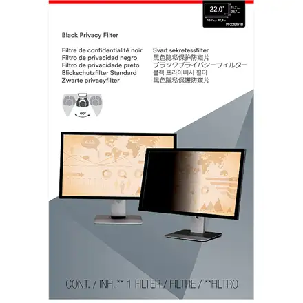 3M 98044054140. Sobilik: Monitor, Tüüp: Raamideta ekraani privaatsusfilter, Filtri värv: Must. Ekraanifiltri omadused: Peegeldusvastane, Toetatud ekraanitüübid: LCD/CRT, Kuvasuhe: 16:10. Maksimaalne ekraanisuuruse sobivus: 55,9 cm (22"), Pööratavus: Matist läikivaks. Laius: 474 mm, Kõrgus: 297 mm, Laius: 47,5 cm (18.7")
