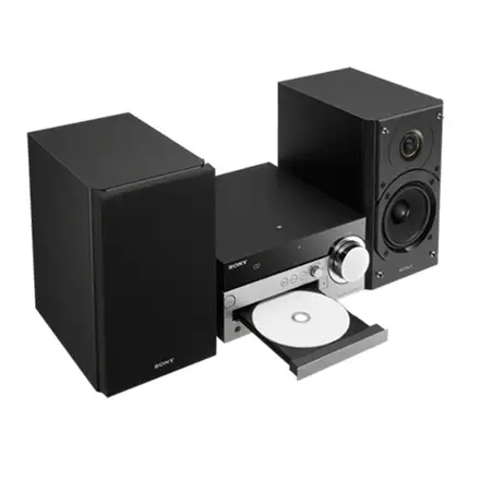 Sony CMT-SX7. Toote värv: Must, Hõbe, Optiliste diskide arv: 1 ketast. RMS-nimivõimsus: 100 W, Sagedusvahemik: 50 - 40000 Hz. Toetatud raadiolainealad: AM,FM. Kuvamise tüüp: LCD. Kõrvaklappide ühenduvus: 3,5 mm