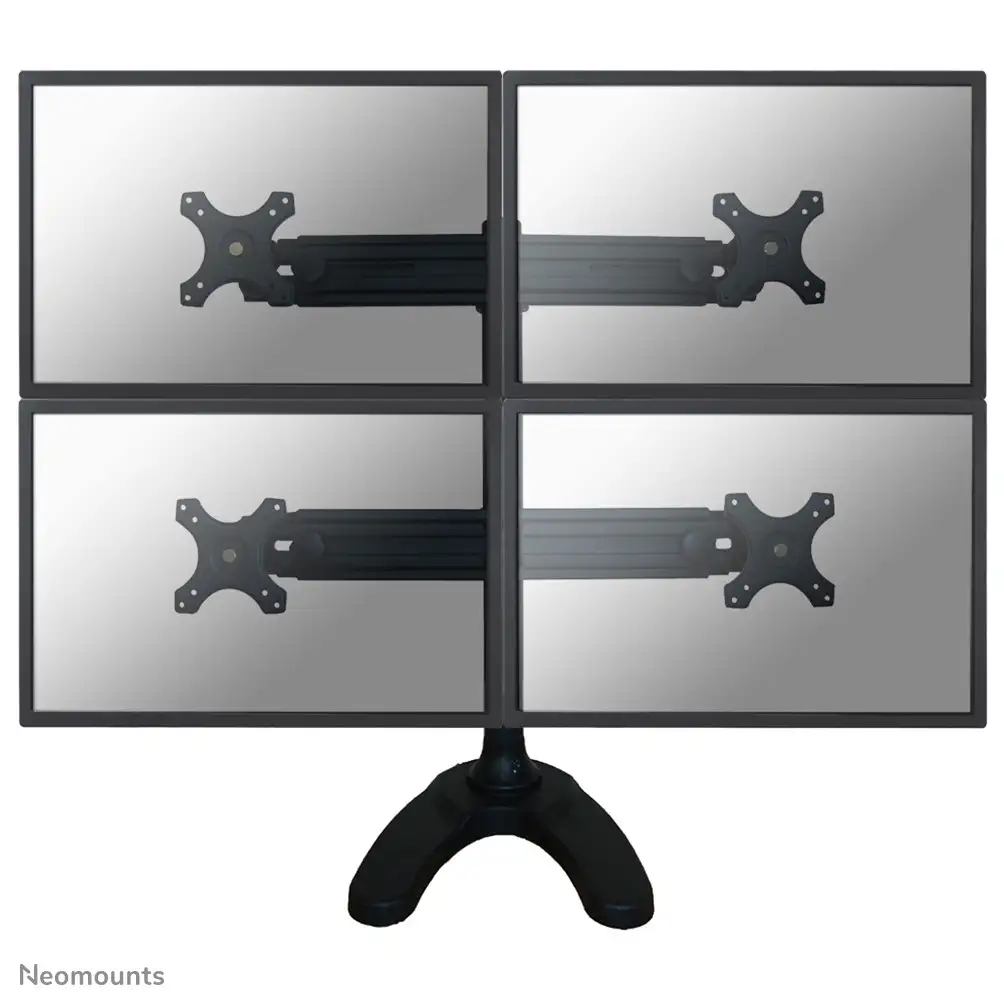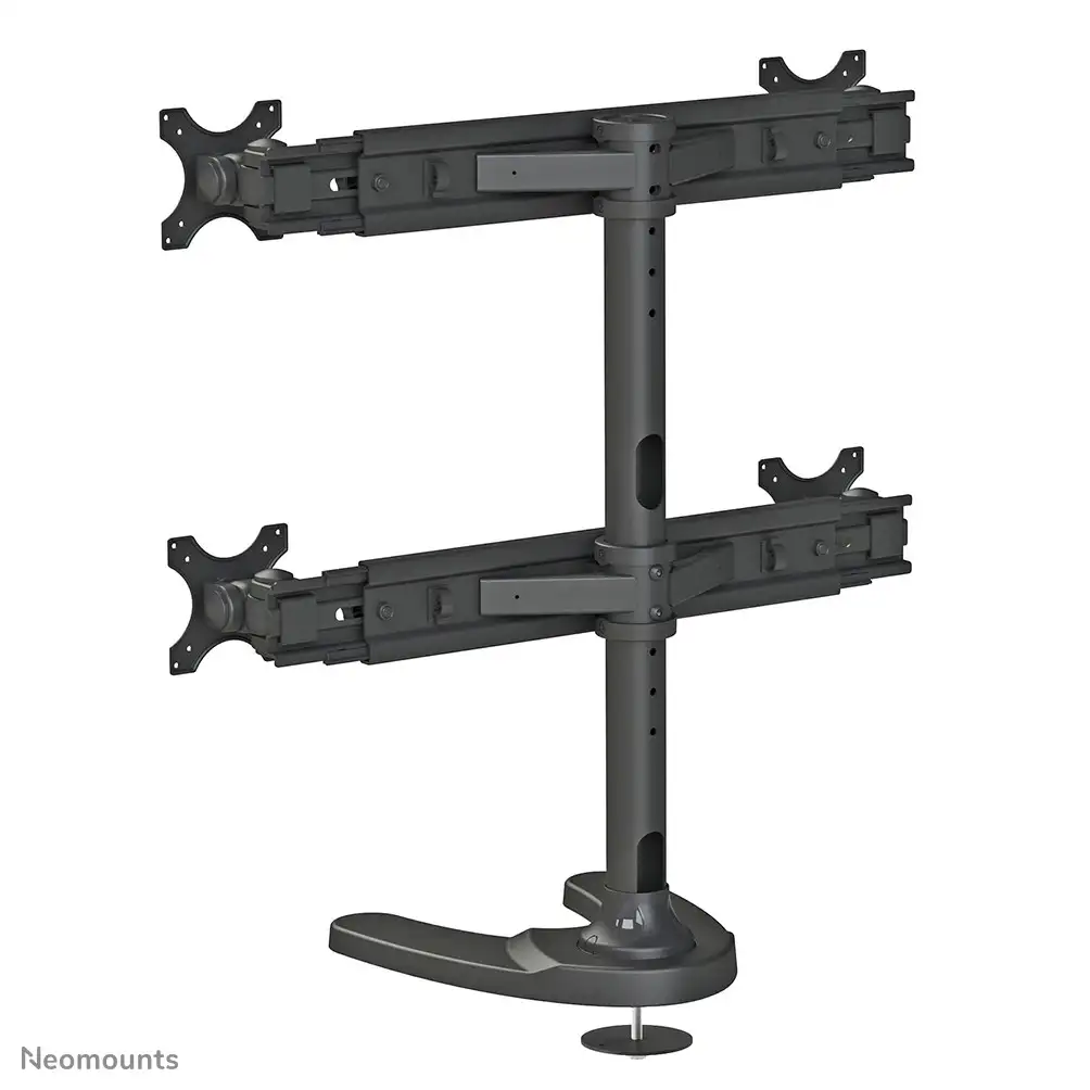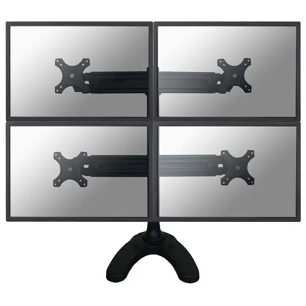 The NewStar desk mount, model FPMA-D700DD4 is a tilt-, swivel and rotatable desk mount for 4 flat screens up to 27”. This mount is a great choice for space saving placement on desks using a desk stand or grommet mount.