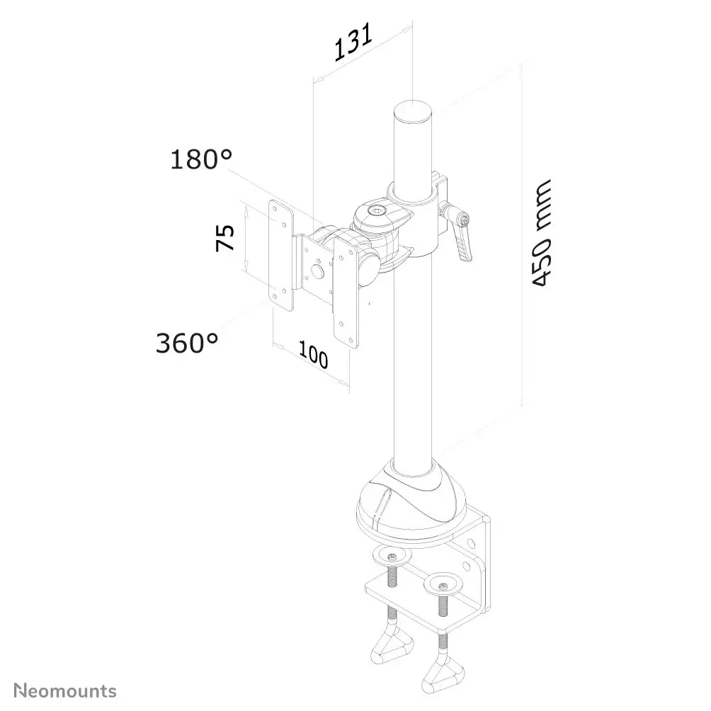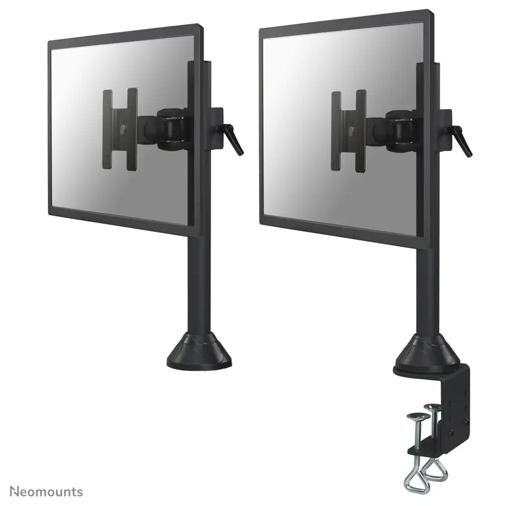 NewStar FPMA-D965 has two pivot points and is suitable for screens up to 26" (65 cm). The weight capacity of this product is 12 kg each screen. The desk mount is suitable for screens that meet VESA hole pattern 75x75 or 100x100mm. Different hole patterns can be covered using NewStar VESA adapter plates.