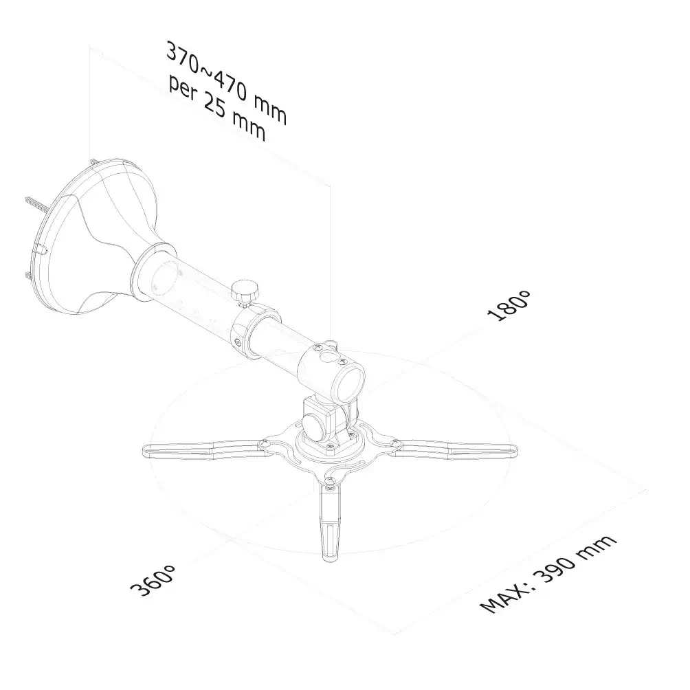 The use of a wall mount offers to benefit upmost from the capabilities of the projector. This support is depth adjustable from 31 to 41 cm and easily holds projectors up to 12 kilograms. The tilt-, rotation- and swivel settings ensure the best viewing angle. Ideally mountable to any wall. Hide your cables in the column to keep it nice and tidy.