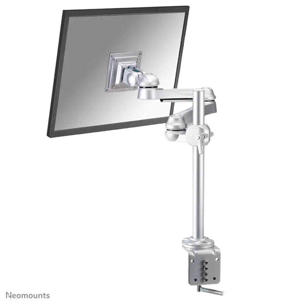 The NewStar desk mount, model FPMA-D930 is a tilt-, swivel and rotatable desk mount for flat screens up to 30”. This mount is a great choice for space saving placement on desks using a desk clamp.