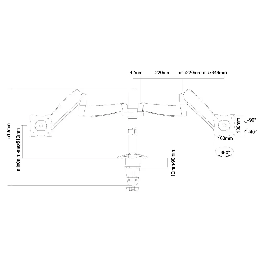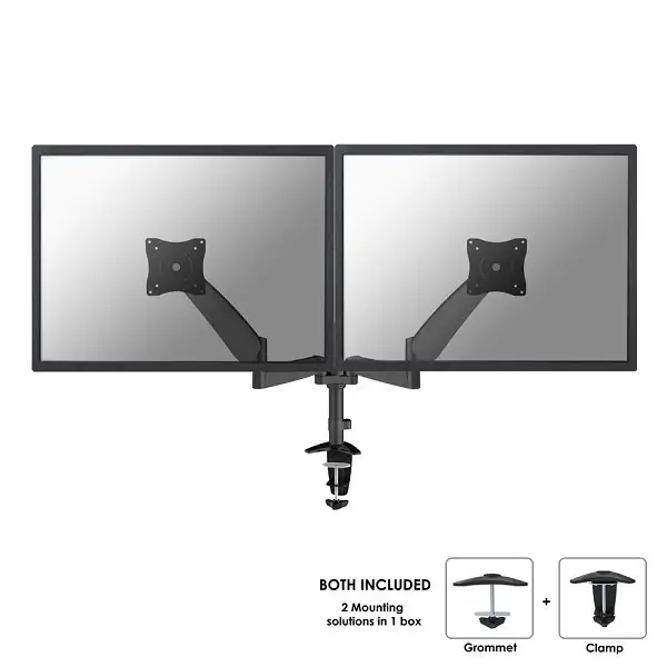 Neomounts FPMA-D950D. Paigaldus: Klamber/läbiv polt, Maksimaalne kaal (mahutavus): 9 kg, Ekraani minimaalne suurus: 25,4 cm (10"), Ekraani maksimaalne suurus: 68,6 cm (27"), Paigaldussüsteemi ühilduvus (min): 75 x 75 mm, Paigaldussüsteemi ühilduvus (max): 100 x 100 mm. Kõrguse reguleerimine, Kaldenurk: 0 - 130°. Toote värv: Must