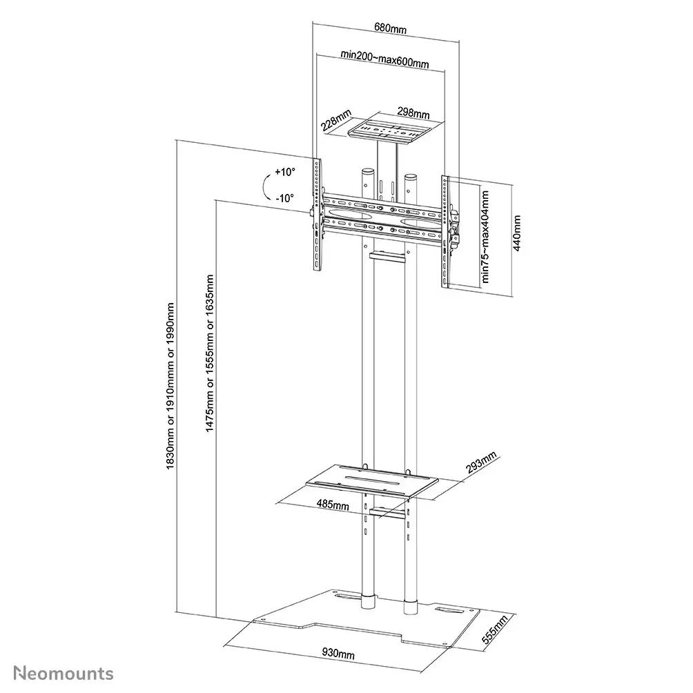 NewStar PLASMA-M1700ES has one pivot point and is suitable for screens up to 55" (140 cm). The weight capacity of this product is 35 kg each screen. The stand is suitable for screens that meet VESA hole pattern 200x200 to 600x450mm.