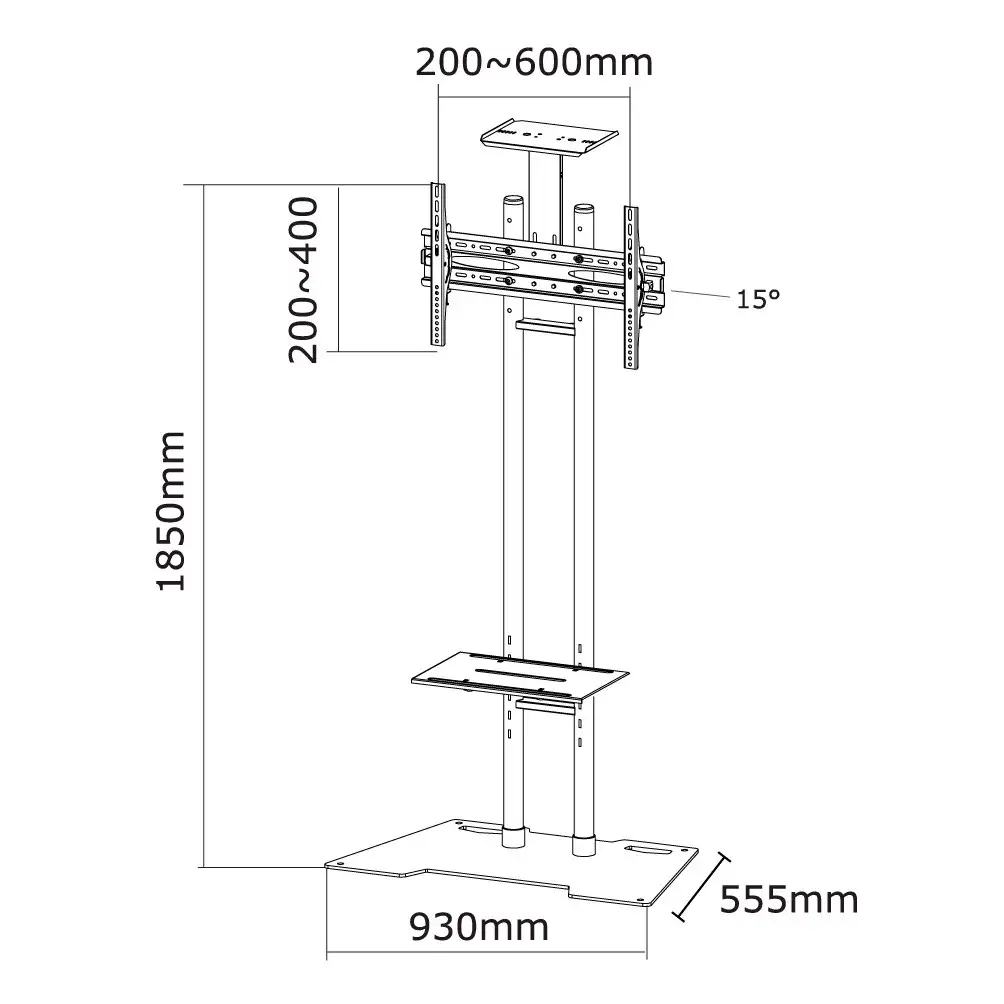 NewStars’ unique tilt (15°) technology allows the mount to change to any viewing angle to fully benefit from the capabilities of the flat screen. The mount is manually height adjustable from 155 to 170 centimetres. A unique cable management conceals and routes cables from mount to flat screen. Hide your cables to keep the stand nice and tidy.