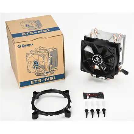 | Üldised näitajad | The Enermax ETS-N31 is a tower cooler with 92mm fan designed to cool compact PC systems. The cooler has a low profile of only 125mm and comes with a tool less top mounted installation system. The 3x Ø6mm heat pipes with Heat Pipe Direct Touch (HDT) and the air stream optimizations Vortex Generator Flow (VGF, patented) and Vacuum Effect Flow (VEF) work together to reach a cooling performance of 130W TDP. The asymmetric heat pipe design provides the best compatibility with high RAM modules. ETS-N31 supports all latest Intel® and AMD® sockets including AMD AM4. |