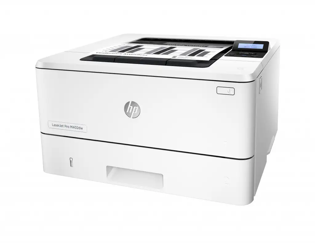 HP LaserJet M402dw. Printimistehnoloogia: Laser, Prindikassettide arv: 1, Maksimaalne käidutsükkel: 80000 lehekülge kuu kohta, Maksimaalne resolutsioon: 4800 x 600 DPI. Maksimaalne ISO A-seeria paberi suurus: A4. Printimiskiirus (must-valge, tavakvaliteet, A4/US Letter-formaat): 40 lk/min. Standardne sisestusvõimsus: 250 lehte. Standardne väljundvõimsus: 150 lehte. Kahepoolne printimine. Ekraan: LCD. Võrguvalmidus, WiFi. Toote värv: Valge