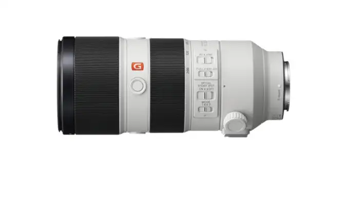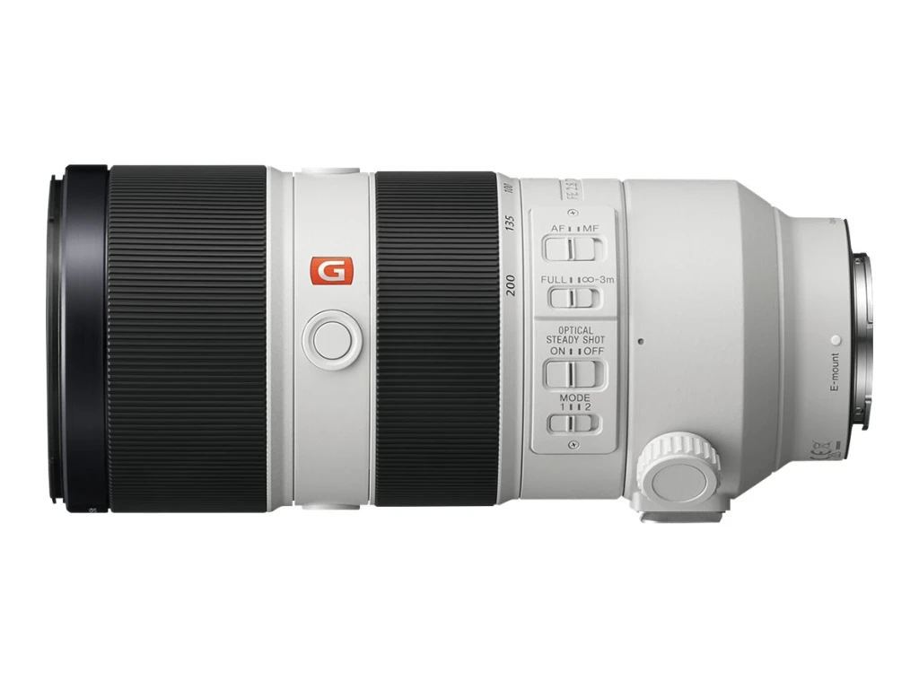 Sony FE 70-200MM F2.8 GM OSS. Komponent: SLR, Objektiivi struktuur (elemendid/grupid): 23/18, Objektiivi tüüp: Telefoto suumobjektiiv. Kaamera kaubamärkide ühilduvus: Sony, Maksimaalne suurendus: 0,25x. Toote värv: Must, Valge. Läbimõõt: 8,8 cm, Filtri suurus: 7,7 cm, Pikkus: 200 mm