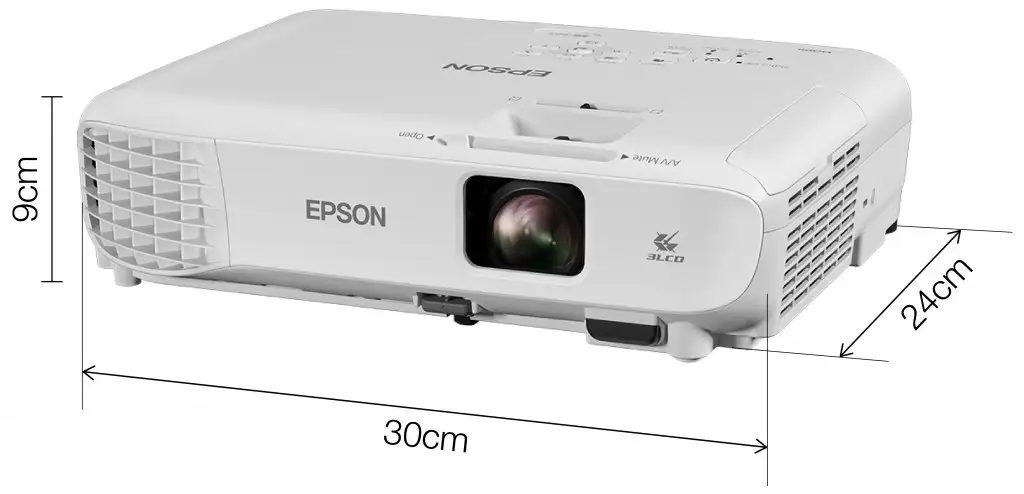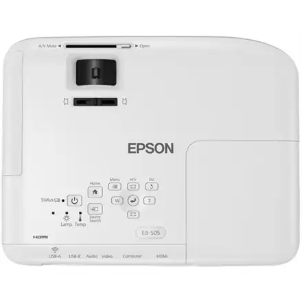 Epson EB-S05. Projektori heledus: 3200 ANSI luumenit, Projektsioonitehnoloogia: 3LCD, Projektori loomulik resolutsioon: SVGA (800x600). Lambi tööiga: 6000 h, Pirni võimsus: 210 W, Lambi tüüp: UHE. Fookus: Manuaal, Fikseeritud fookuskaugus: 1,67 cm, Apertuuriulatus (F-F): 1,44 - 1,44. Video töötlemine: 10 bitti, Värvirežiim (2D): Kino, Dünaamiline, Video värvirežiimid: Musttahvel, Kino, Dünaamiline, Esitlus, sRGB. HDMI-pistiku tüüp: Täissuurus