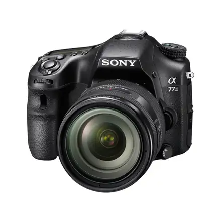 Sony A77 II + DT 16-50mm F2.8 SSM, α. Kaamera tüüp: SLR-kaamera komplekt, Megapiksel: 24,3 MP, Anduri tüüp: CMOS. Digitaalne suum: 4x, Fookuskauguse ulatus (f-f): 16 - 50 mm, Extra/Smart suum: 2x. Teravustamine: Automaatne/manuaalne, Automaatfookuse (AF) režiimid: Pidev autofookus, Ühekordne autofookus. ISO-tundlikkus: 50, 100, 12800, 25600, 51200, Valgussärituse režiimid: Ava eelistus AE, Automaatne, Manuaal, Katiku prioriteet AE, Valgussärituse korrektsioon: ±5EV (1/2; 1/3 EV step). Kaamera kiireim katikukiirus: 1/8000 s, Kaamera aeglaseim katikukiirus: 30 s