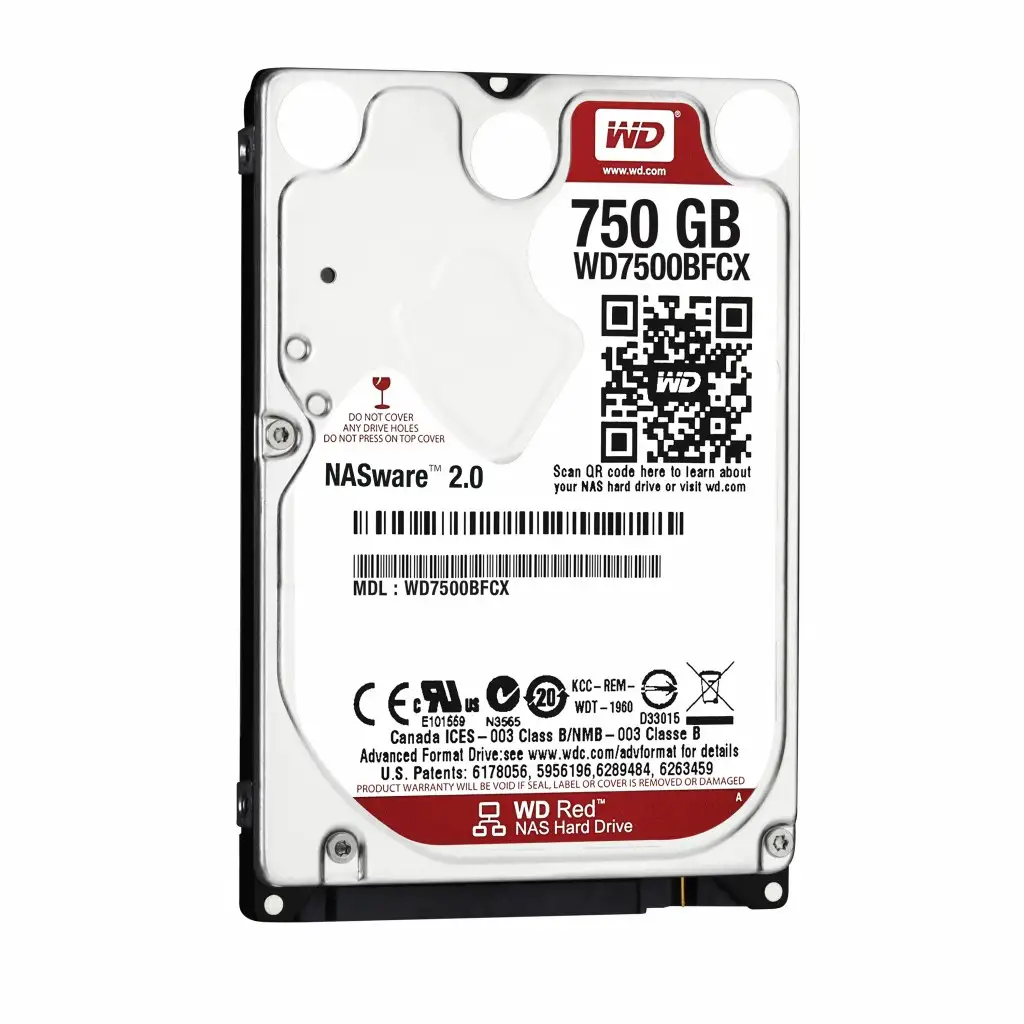 Western Digital Red. Kõvaketta suurus: 2.5", Kõvakettamaht: 750 GB, Kõvaketta kiirus: 5400 RPM