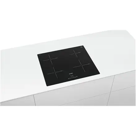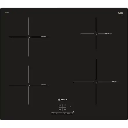 Bosch Serie 4 PUE611BB1E. Toote värv: Must, Seadme paigaldus: Sisseehitatud, Pliidiraua tüüp: Tsoonita induktsioonplaat. Kontrolli tüüp: Puudutus. Ühendatud koormus (elekter): 4600 W, AC-sisendsagedus: 50 - 60 Hz. Laius: 592 mm, Sügavus: 522 mm, Kõrgus: 51 mm