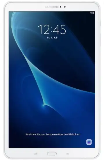 Samsung Galaxy Tab A SM-T580N. Ekraani diagonaal: 25,6 cm (10.1"), Ekraani resolutsioon: 1920 x 1200 pikslit, Ekraani tehnoloogia: TFT-ekraan. Sisemine mälumaht: 16 GB. Protsessori sagedus: 1,6 GHz, Protsessori perekond: Samsung Exynos, Protsessori mudel: 7870. Sisemälu: 2 GB. Tagakaamera resolutsioon (numbriline): 8 MP, Esikaamera resolutsioon (numbriline): 2 MP. Wi-Fi standard: IEEE 802.11ac. Integreeritud kaardilugeja. Kaal: 525 g. Installitud operatsioonisüsteem: Android 6.0. Toote värv: Valge
