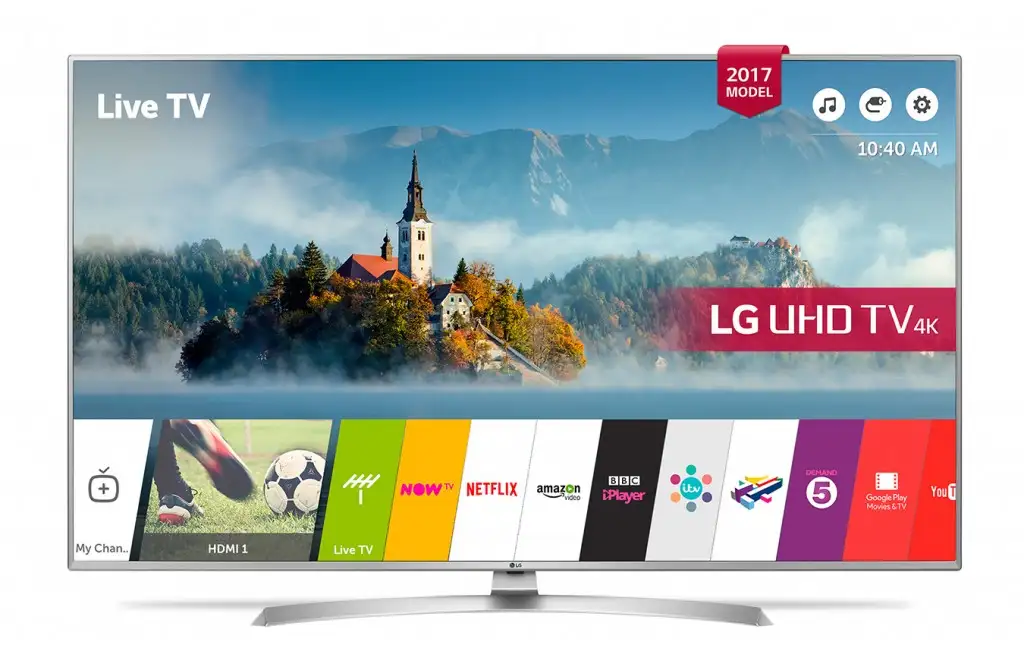 LG 43UJ701V. Ekraani diagonaal: 109,2 cm (43"), Ekraani resolutsioon: 3840 x 2160 pikslit, HD tüüp: 4K Ultra HD, Ekraani tehnoloogia: LED, Ekraani kuju: Lame, LED tagantvalguse tüüp: Direct-LED. Nutiteleri funktsioon. Resolutsiooni interpolatsiooni tehnoloogia: PMI (Picture Mastering Index) 1900, Kuvasuhe: 16:9. Digitaalsignaali formaadisüsteem: DVB-C,DVB-S2,DVB-T2. WiFi, Ethernet LAN. Kaal: 9,2 kg. Toote värv: Hõbe