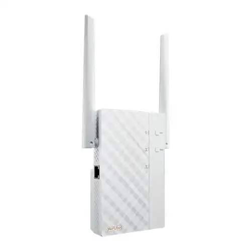 ASUS RP-AC56. Andmeedastuskiirus (maksimaalne): 1167 Mbit/s, Võrgustandardid: IEEE 802.11a,IEEE 802.11ac,IEEE 802.11b,IEEE 802.11g,IEEE 802.11n, Ribalaius: 5 GHz. Turvaalgoritmid: WPA-PSK,WPA2-PSK,WPS. Toote värv: Valge, LED-indikaatorid: Võimsus, WLAN. Ühilduvad operatsioonisüsteemid: Windows® 8.1 Windows® 8 Windows® 7 Windows® Vista Windows® XP Mac OS X 10.5 Mac OS X 10.6 Mac.... Laius: 139 mm, Sügavus: 85 mm, Kõrgus: 33,5 mm
