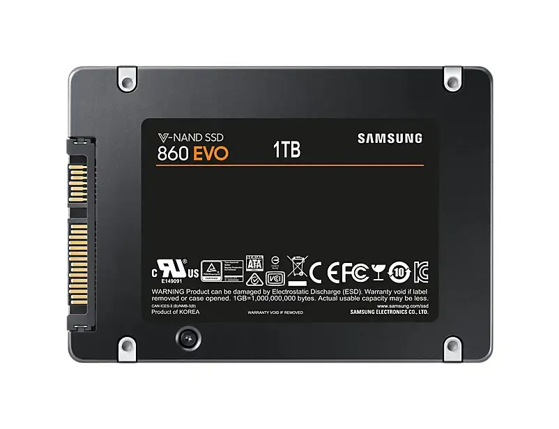 Samsung 860 EVO 1 TB. Pooljuhtketta maht: 1000 GB. SSD-ketta mõõtmed: 2.5". Pooljuhtketta liides: Jada ATA III, Andmeedastuskiirus: 6 Gbit/s, Komponent: PC/sülearvuti