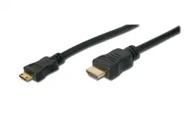 Cable for digital video / audio transmission up to a max. data rate of 10,2 Gbit/s.Resolution: 1920 x 1080 Pixel -> 1080p.HDMI type C (19-pin) mini plug <=> HDMI type A (19-pin) plug• Molded housing• 19-wire cable, double shielded, AWG30• UL20276• Gold plated• HDMI 1.3b compliant• Color: black