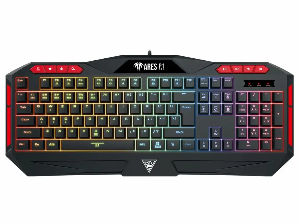 GAMDIAS ARES P1. Klaviatuuri kujutegur: Standard. Klaviatuuri stiil: Sirge. Seadme liides: USB, Klaviatuuri klahvilüliti: Membraaniga klahvlüliti. Tagantvalgustuse tüüp: RGB LED. Kaabli pikkus: 1,8 m. Soovituslik kasutus: Mängimine. Toote värv: Must