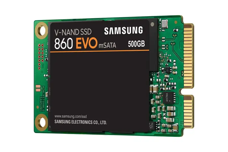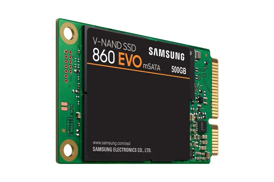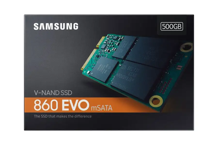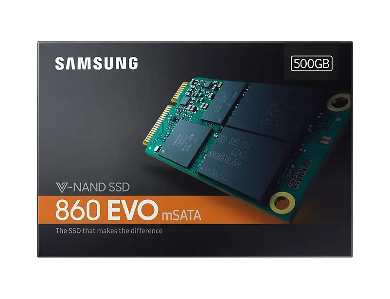 Samsung 860 EVO. Pooljuhtketta maht: 500 GB, SSD-ketta mõõtmed: mSATA, Lugemise kiirus: 550 MB/s, Kirjutamise kiirus: 520 MB/s, Andmeedastuskiirus: 6 Gbit/s, Komponent: PC/sülearvuti