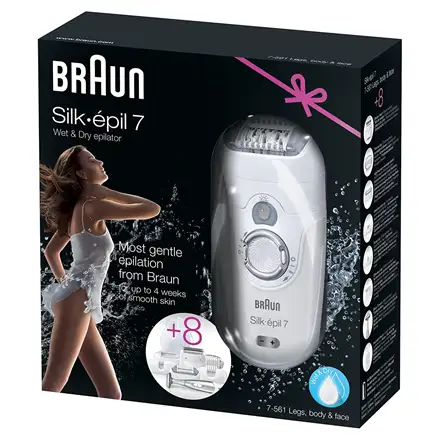 Braun Silk-épil 7. Toote värv: Hõbe, Valge, Pintsettide arv: 40 pintsetid, Minimaalne juuksepikkus: 0,5 mm. Aku tüüp: Sisseehitatud, Aku pinge: 12 V. Kaal: 539 g. Pakendi laius: 82 mm, Pakendi sügavus: 236 mm, Pakendi kõrgus: 176 mm