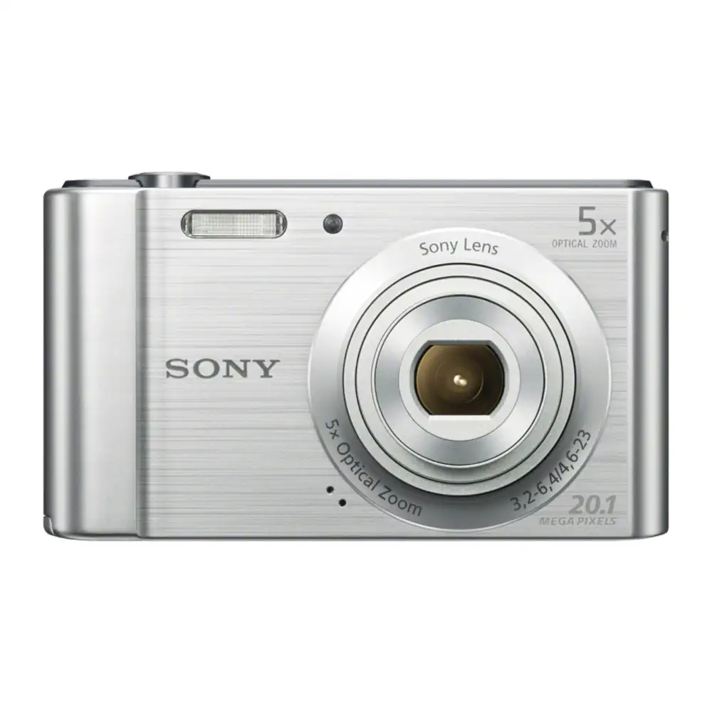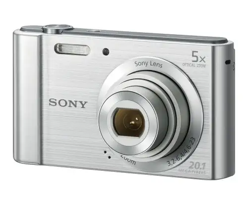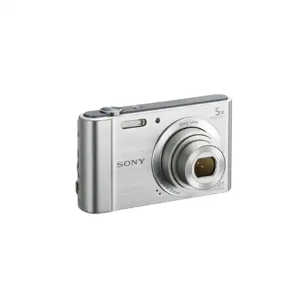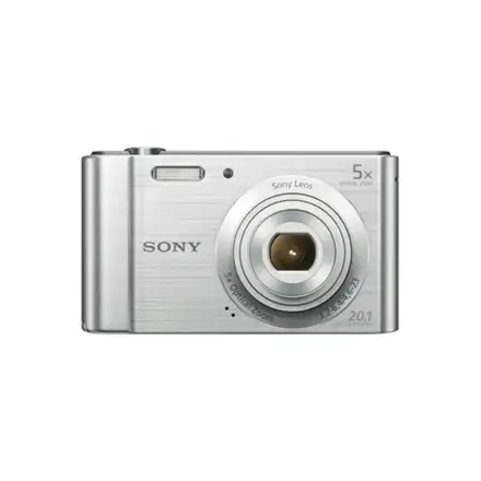 Sony Cyber-shot DSC-W800. Kaamera tüüp: Kompaktkaamera, Megapiksel: 20,1 MP, Pildianduri suurus: 1/2.3", Anduri tüüp: CCD, Maksimaalne pildiresolutsioon: 5152 x 3864 pikslit. ISO-tundlikkus (max): 3200. Optiline suum: 5x, Digitaalne suum: 40x, Fookuskauguse ulatus: 4.6 - 23 mm. Kaamera kiireim katikukiirus: 1/1500 s. Maksimaalne video resolutsioon: 640 x 480 pikslit. Ekraani diagonaal: 6,86 cm (2.7"). Sisemälu: 29 MB. Kaal: 109 g. Toote värv: Hõbe