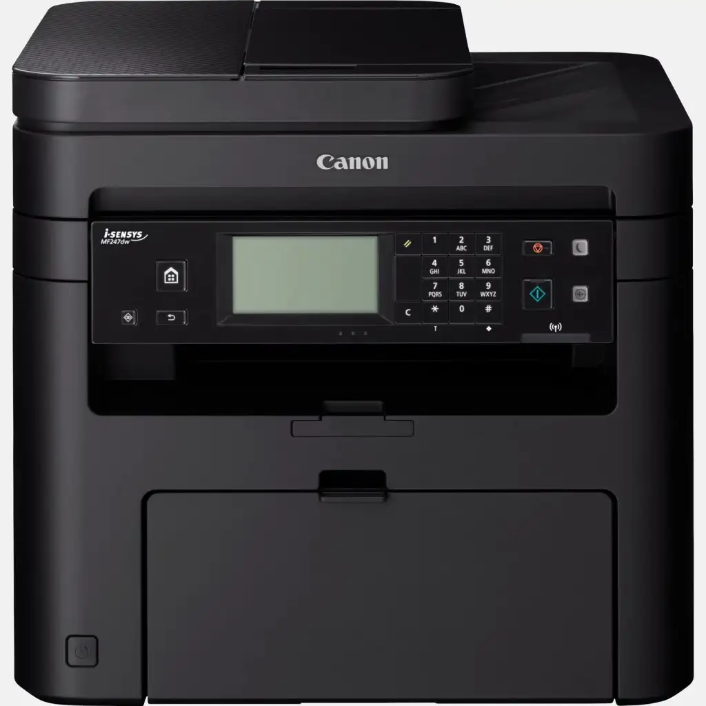 Canon i-SENSYS MF247dw. Printimistehnoloogia: Laser, Printimine: Mono printimine. Maksimaalne resolutsioon: 600 x 600 DPI. Kopeerimine: Mono kopeerimine. Maksimaalne kopeerimisresolutsioon: 600 x 600 DPI. Skaneerimine: Värviskaneerimine. Optilise skaneerimise resolutsioon: 600 x 600 DPI. Faksimine: Mono faksimine, Dupleksfunktsioonid: Koopia, Faks, Print. Maksimaalne ISO A-seeria paberi suurus: A4. Standardne sisestusvõimsus: 250 lehte. Standardne väljundvõimsus: 100 lehte. WiFi. Toote värv: Must