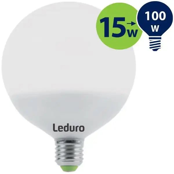 Installation E27|Power consumption 15 Watts|Luminous flux 1200 Lumen|Light colour temperature 2700 K|Voltage 220-240V|Beam angle 360 degrees|Dimensions D 120 mm / H 152 mm