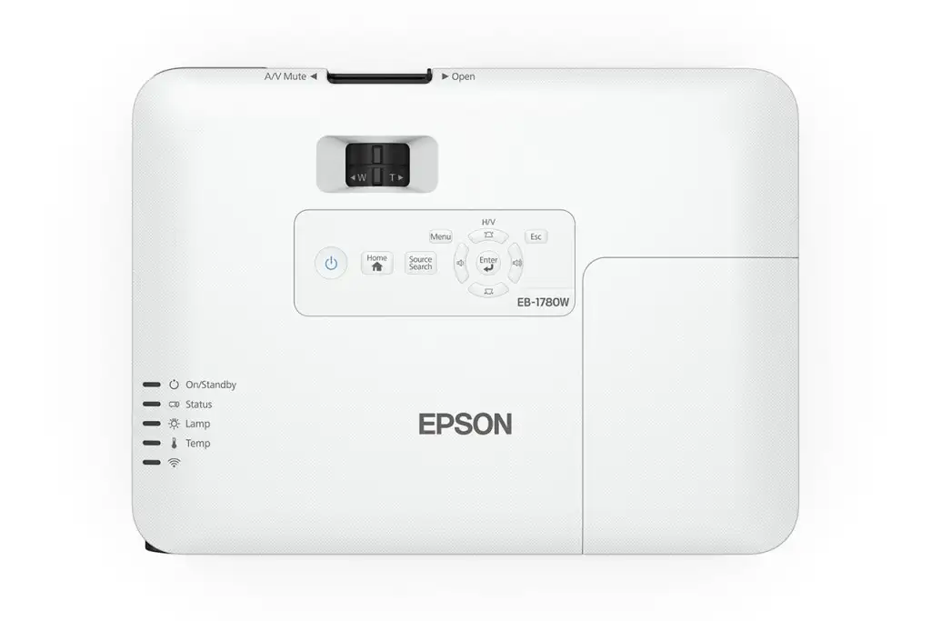 Epson EB-1780W. Projektori heledus: 3000 ANSI luumenit, Projektsioonitehnoloogia: 3LCD, Projektori loomulik resolutsioon: WXGA (1280x800). Lambi tööiga: 4000 h, Pirni võimsus: 206 W, Lambi tööiga (säästurežiim): 7000 h. Fookus: Manuaal, Fookuskauguse ulatus (f-f): 13,52 - 16,22 mm, Apertuuriulatus (F-F): 1,58 - 1,7. Toetatud graafikaresolutsioonid: 1280 x 800 (WXGA), Video töötlemine: 10 bitti, Video värvirežiimid: Musttahvel, Kino, Dünaamiline, Esitlus, sRGB. WiFi-standardid: 802.11b,802.11g,Wi-Fi 4 (802.11n)