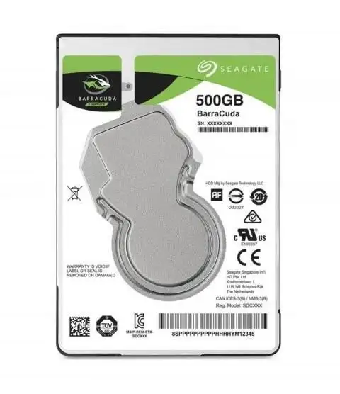 Seagate Barracuda Pro. Kõvaketta suurus: 2.5", Kõvakettamaht: 500 GB, Kõvaketta kiirus: 7200 RPM