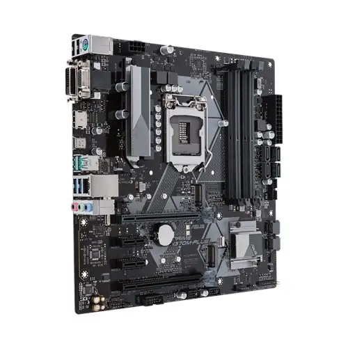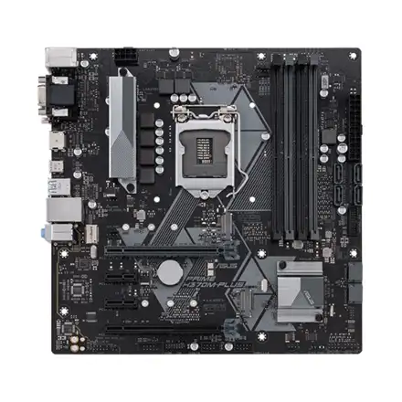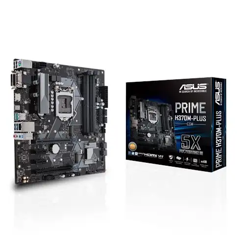 ASUS PRIME H370M-PLUS. Toetatud mälutüübid: DDR4-SDRAM, Mälupesa tüüp: DIMM, Toetatud mälu taktsagedused: 2133,2400,2666 MHz. Protsessori tootja: Intel, Ühilduvad protsessoriseeriad: Intel® Celeron®, Intel® Core™ i3, Intel Core i5, Intel Core i7, Intel® Pentium®, Protsessori pesa: LGA 1151 (pesa H4). Kõvaketta ühenduse tüüp: M.2, Jada ATA III. Ethernet-liidese tüüp: Gigabit Ethernet, LAN-kontroller: Intel I219V. Komponent: PC, Emaplaadi kiibistik: Intel, Emaplaadi kiip: Intel® H370